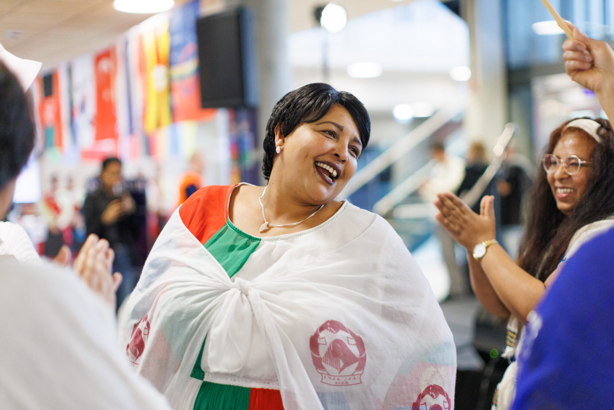 Når du ankommer kulturhuset blir du møtt av vakre folkedrakter fra mange kulturer – og fristende smakebiter fra Thailand, Eritrea, Ukraina, Polen og Filippinene.